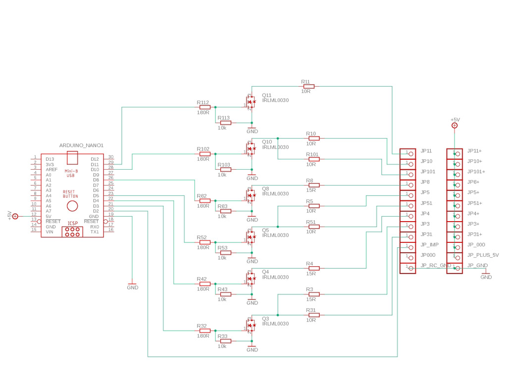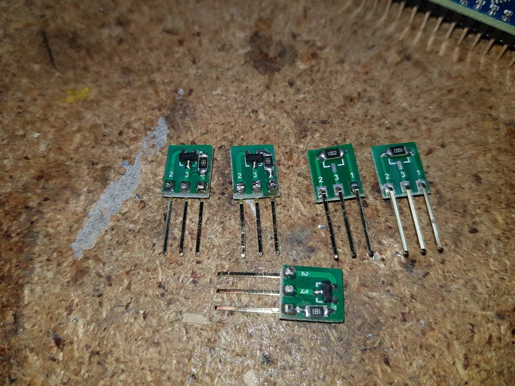 2. Die Mosfets nicht direkt auf die Lochrasterplatine sondern auf kleine Adapterplatinen zu löten. Auf Lochraster passt es nicht so 100%ig und außerdem kann man die Adapterplatinen einfach auslöten, wenn mal ein Mosfet den Geist aufgibt. Aus demselben Grund habe ich auch den Arduino nicht verlötet, sondern in Buchsenleisten gesteckt.