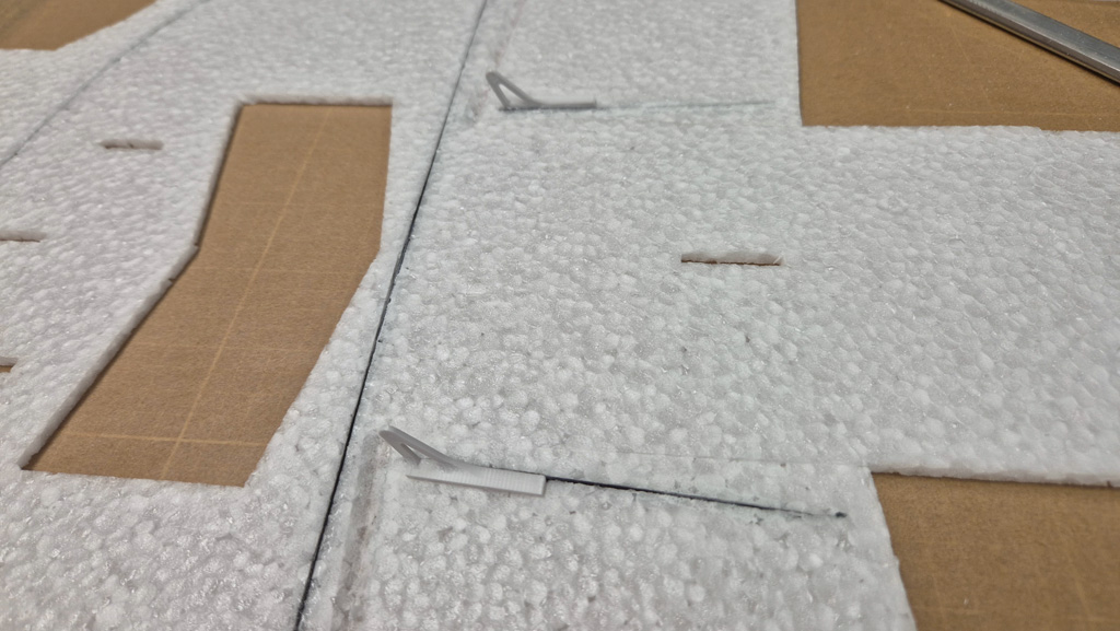 - Die T-45 ist normalerweise ein Tiefdecker. Um die Agilität zu erhöhen, habe ich die Tragfächen angehoben und genau in der Propellerachse positioniert. D.h. mein Flieger ist jetzt ein Mitteldecker. Mal schauen, ob das so hinhaut.