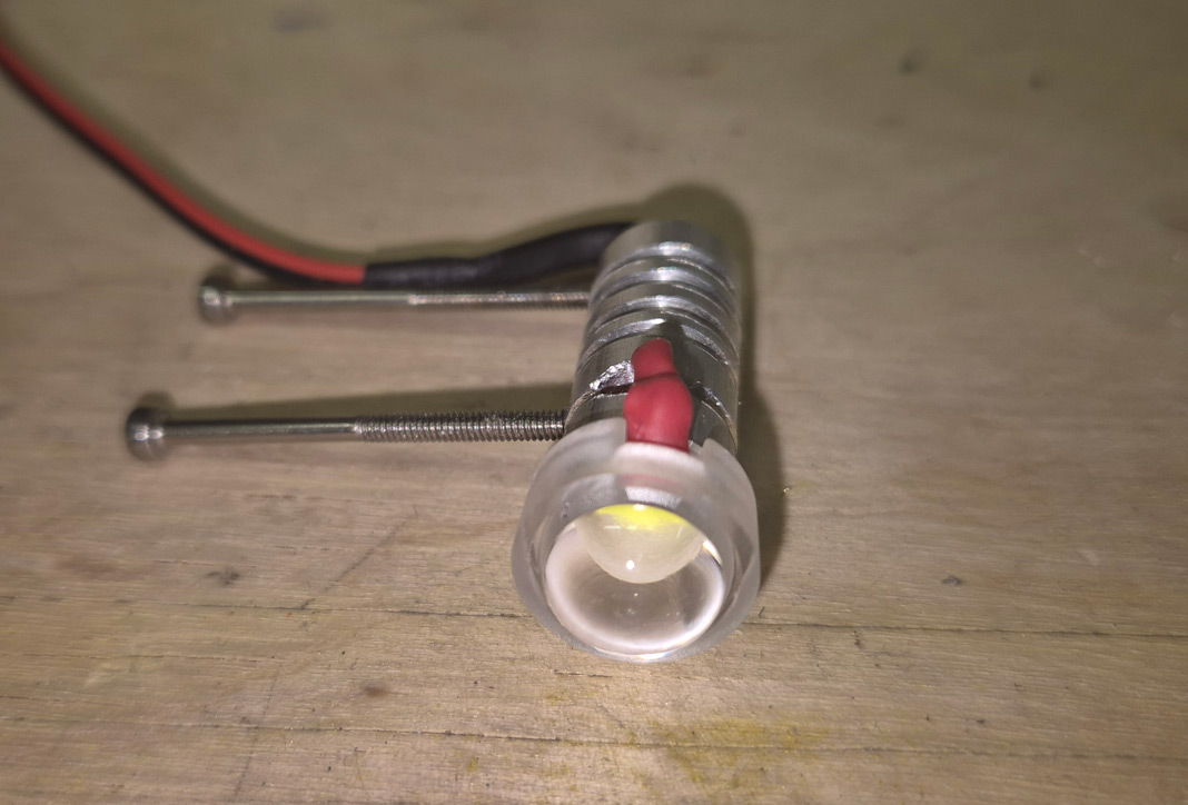 Für die 1 bzw. 3W LEDs habe ich mir noch Kühlkörper angefertigt. Einfach ein 10mm Alu-Rundstab aus dem Baumarkt auf die passende Länge gesägt, Kabeldurchführungen gebohrt, Gewinde für die Befestigungsschrauben geschnitten und Kühlrippen auf der Drehbank angebracht. Zum Schluss nur noch die LEDs mit Sekundenkleber aufgeklebt und Kabel verlötet. Dauert ein bisschen, kostet aber fast nix, besonders wenn man die LEDs für ca. 10 cent/Stk beim Ali kauft. In der Pilatus habe ich genau diese LEDs mit Kühlkörpern drin und selbst im Sommer hat es bisher noch keine Kühlprobleme gegeben.