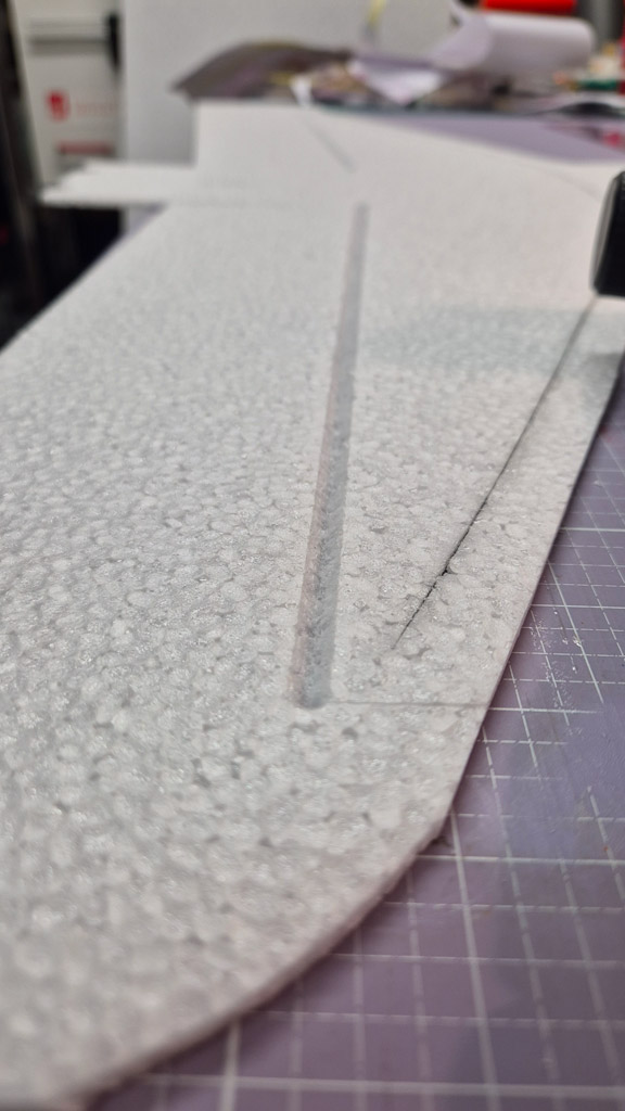 Weiterhin habe ich am Höhenruder den V-Ausschnitt noch nicht gemacht, um mehr Ruderfläche zu haben. Ich denke das lasse ich auch so. Das Seitenruder jedoch werde ich demnächst noch etwas verkleinern, so groß wie im Plan braucht es dann doch nicht zu sein.